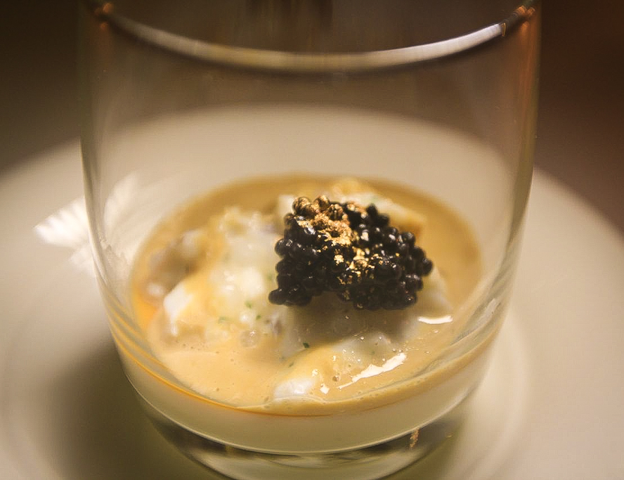 We all loved this one!! You should try it.... It is cauliflower panna cotta with crab jelly tapioca and bits of crab and sea urchin ( uni ) and topped with caviar.